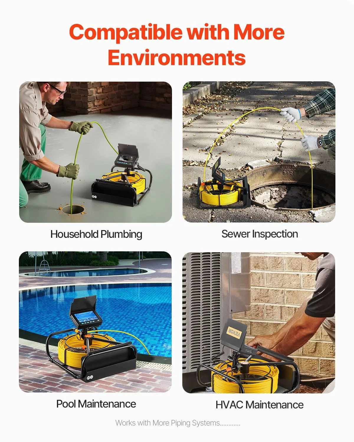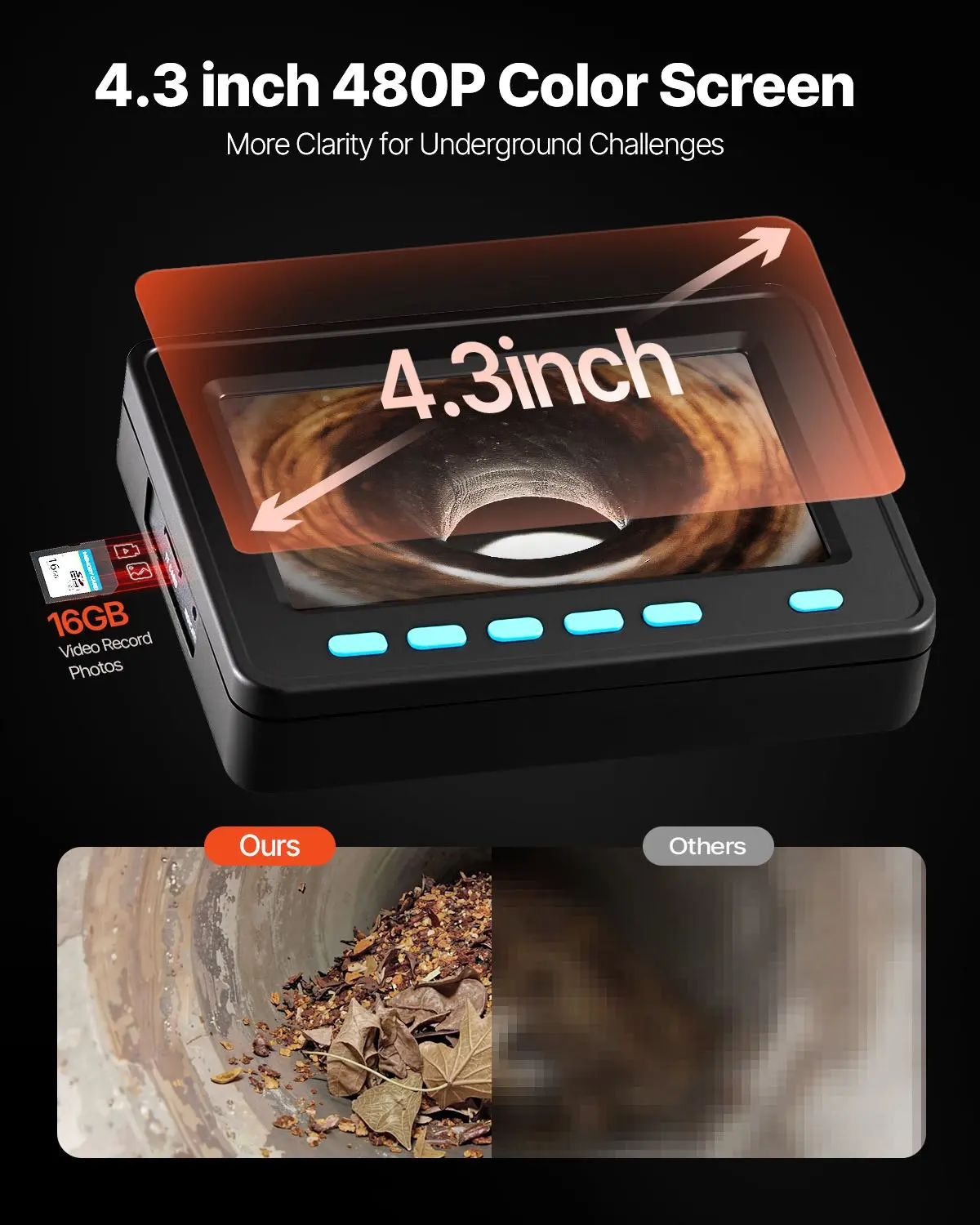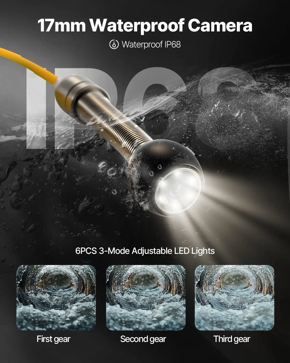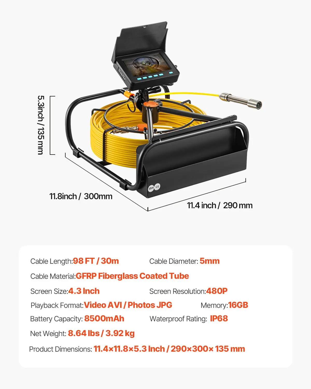 VEVOR Sewer Camera 30M Cable Pipeline Inspection Camera 11cm TFT LCD Monitor Pipe Camera Screen Waterproof IP68 Duct Inspection Camera with 6PCS LEDs 8500MAH Lithium Battery, DVR Function, 30M